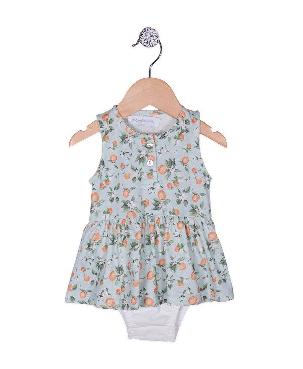 Body vestido de algodon estampado sin mangas con botones delantero.