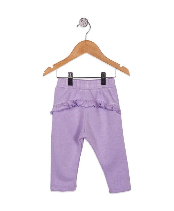 Pantalón liso ,rustico de algodon con detalle de volado trasero.
