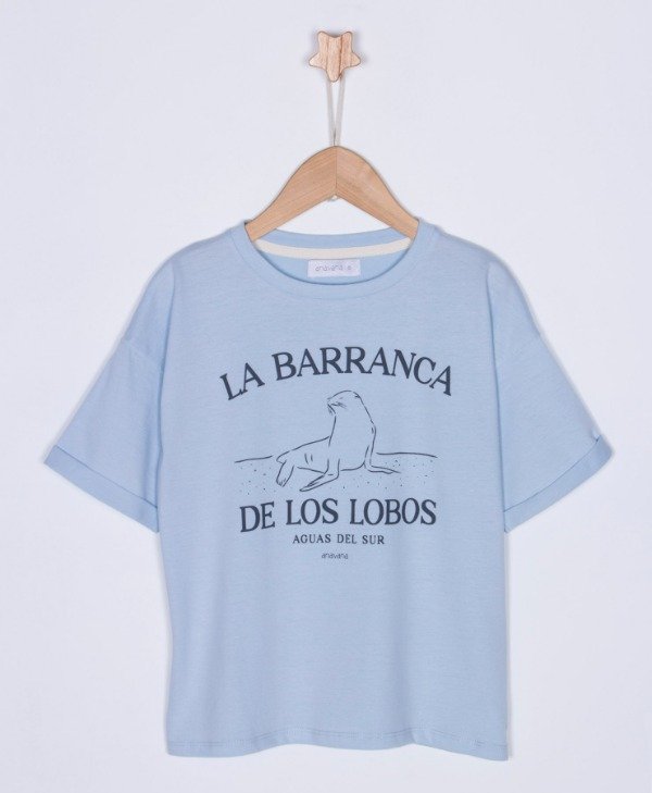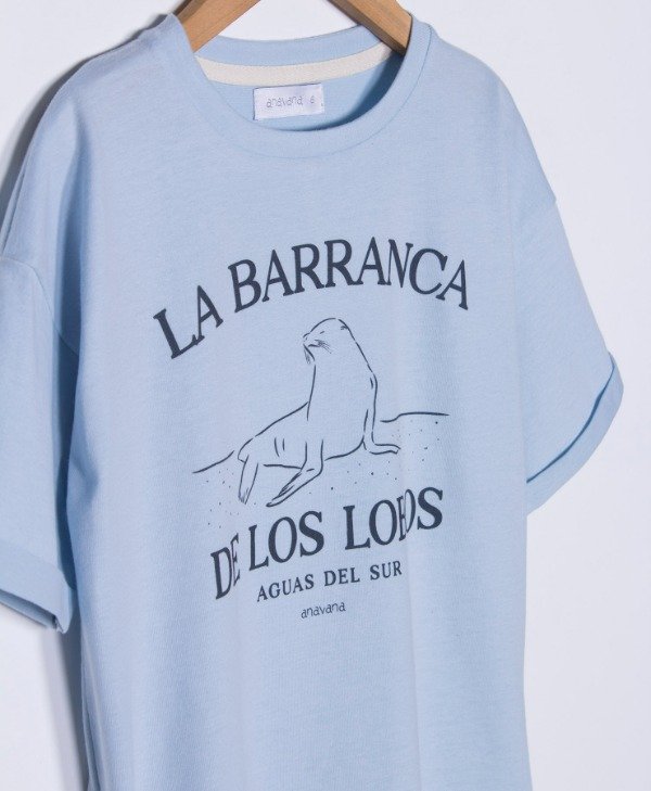 Remera jersey soft oversize con tajitos laterales y estampa, manga corta y cuello redondo.-.