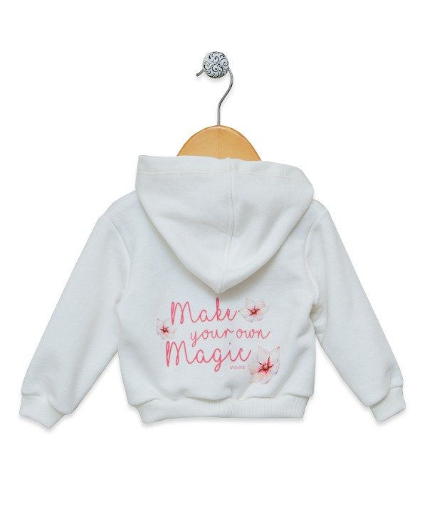 Campera rustica con capucha y detalle en espalda .