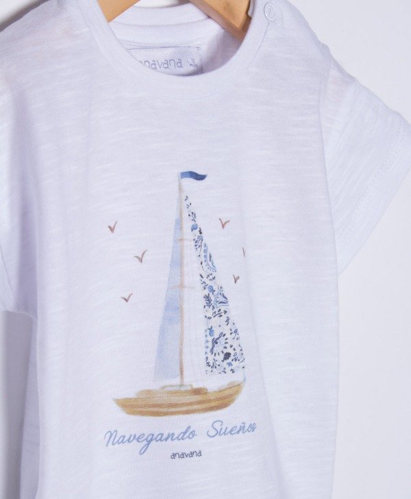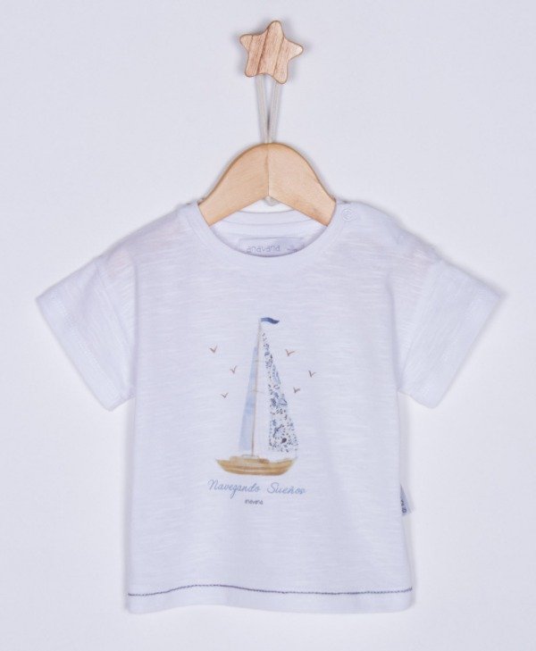 Remera amplia jersey soft con estampa delantera cuello redondo con boton , manga corta