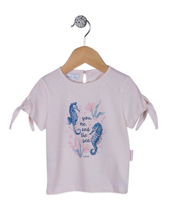 Remera con nudos en mangas y estampa.