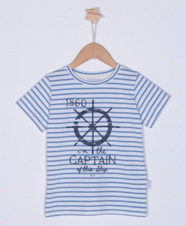 Remera Jersey soft rayada con estampa .