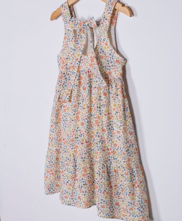 Vestido doble gasa estampado con moño en espalda