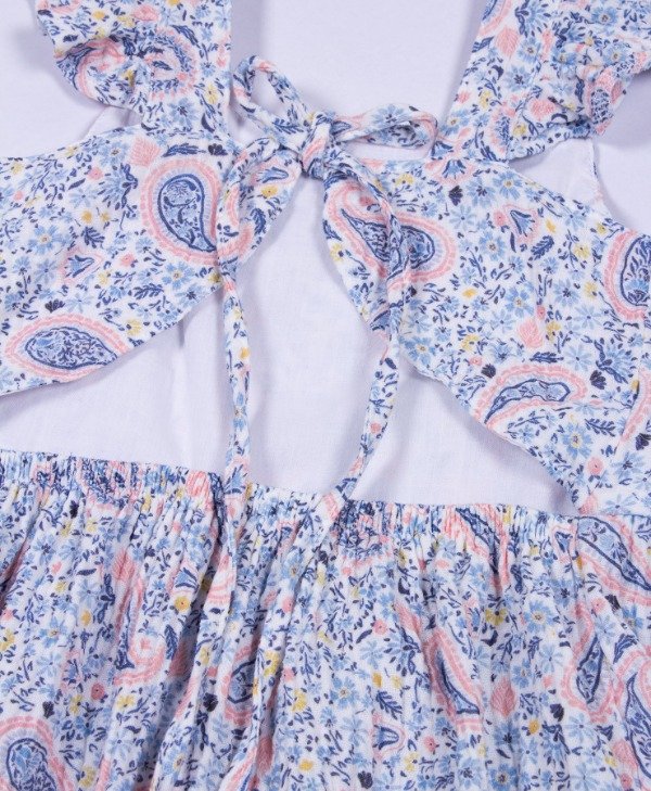 Vestido gasa de algodon estampado ,espalda descubierta .